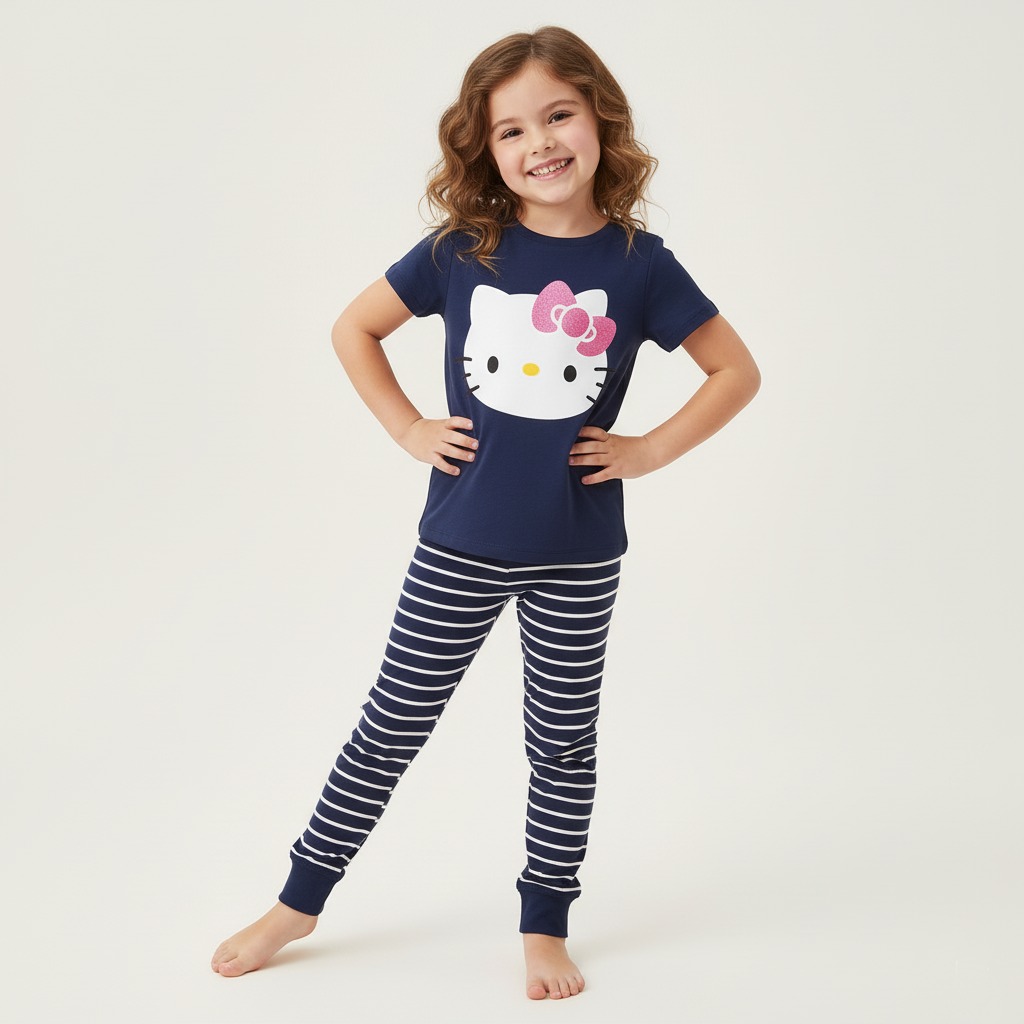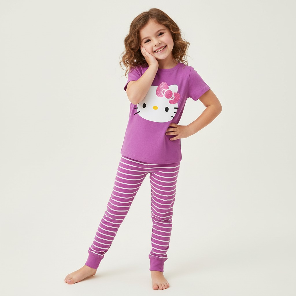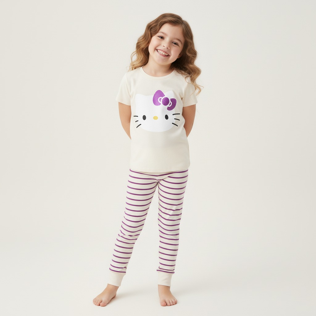Pijama de manga corta 100% algodón, suave y fresca, ideal para dormir con comodidad. Cuenta con serigrafía de Hello Kitty y está disponible en 7 colores diferentes, perfectos para un look divertido y tierno
