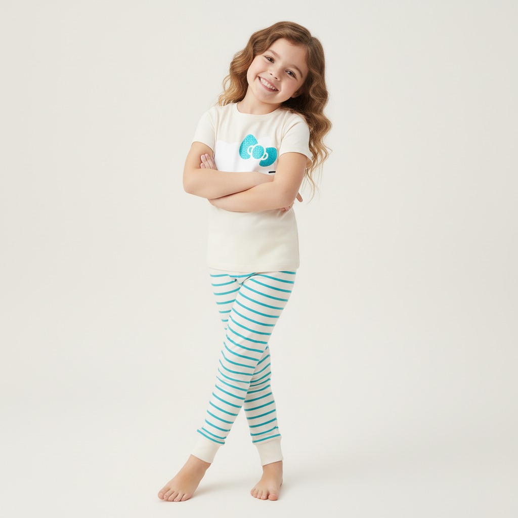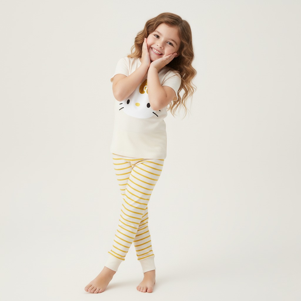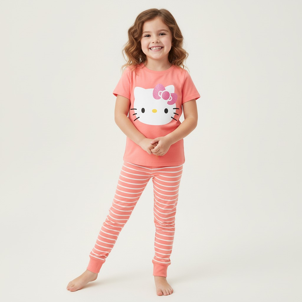 Pijama de manga corta 100% algodón, suave y fresca, ideal para dormir con comodidad. Cuenta con serigrafía de Hello Kitty y está disponible en 7 colores diferentes, perfectos para un look divertido y tierno