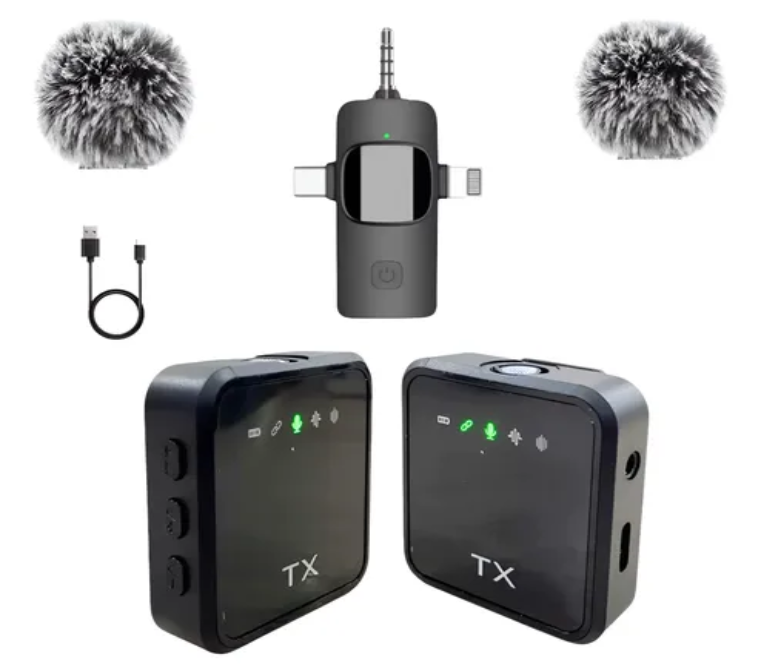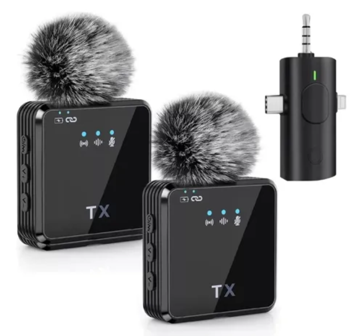Micrófonos Inalámbricos de Solapa (TX + RX) Sonido claro y profesional en cualquier lugar Audio de alta calidad: Captura tu voz con claridad, ideal para videos, entrevistas, clases y transmisiones. Inalámbrico y portátil: Olvídate de los cables y muévete con total libertad. Reducción de ruido: Incluye protector de viento para un sonido limpio incluso en exteriores Fácil de usar: Conexión rápida plug & play, sin configuraciones complicadas Amplia compatibilidad: Funciona con celulares, cámaras y otros dispositivos Diseño compacto: Ligero, discreto y cómodo para llevar a cualquier lado Perfecto para creadores de contenido, estudiantes, docentes y periodistas. ¡Mejora tu audio y haz que tu voz se escuche profesional!