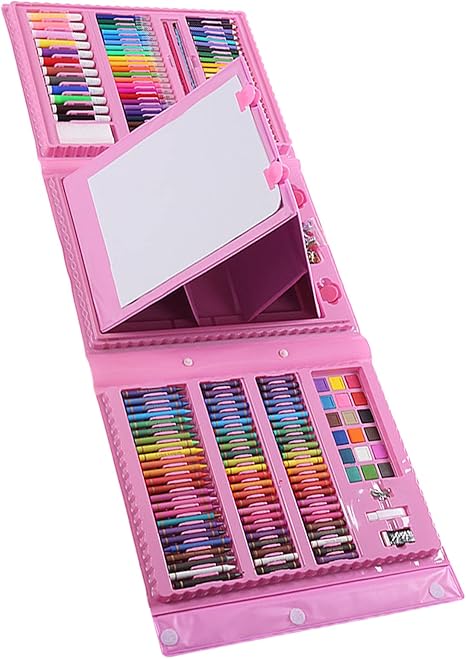 El set de arte es un completo kit creativo diseñado para artistas, estudiantes y amantes del dibujo y la pintura. Incluye una amplia variedad de materiales como lápices de colores, crayones, marcadores, acuarelas, pinceles y accesorios, todo organizado en un práctico maletín portátil. Su diseño compacto permite mantener cada herramienta en su lugar, facilitando el transporte y el uso en cualquier momento. Ideal para fomentar la creatividad, practicar técnicas de pintura o realizar proyectos escolares, este set ofrece todo lo necesario para explorar el arte con comodidad y estilo.