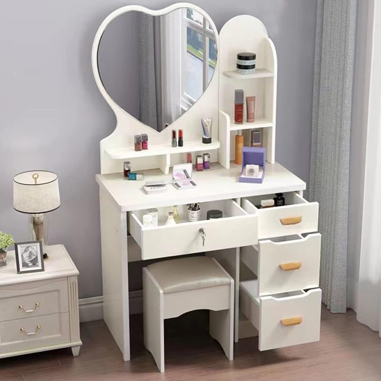 💄✨ Tocador con Espejo en Forma de Corazón + Banquito – Elegante y Moderno